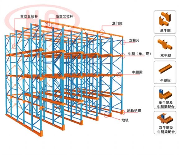 3.這種貨架適用存儲大批量、少品種貫通式貨架(駛入式貨架)的牛腿及牛腿擱板均采用整體沖壓/滾壓技 術,具有承載能力強,外型美觀貨物。