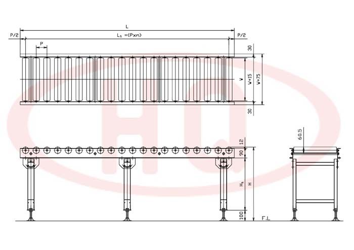 | 輸送機幅寬 W+75 (mm) | 175 | 275 | 375 | 475 | 575 | 675 | 775 | 875 | 975 | 1,075 | ||