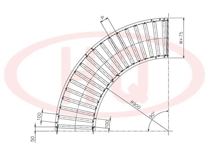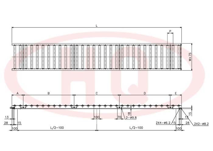 | 型 號 | 滾筒外徑(φ)×壁厚(t) 軸承 | 軸外徑(φ)×壁厚(t) 加工 | 支架形狀I×K×t | 機 長 L | 滾筒幅寬 W | 滾筒間距 P | 轉彎半徑 R | |||||