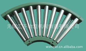 該型輸送機為90度弧形轉彎輸送機,使用錐型滾筒,轉彎半徑小,適用于轉彎空間窄小的輸送機的轉彎連接場合。